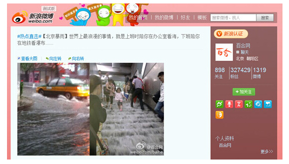 In June 2012, Beijing encountered with a serious rainstorm, which was the most serious one in about one hundred years history. This rainstorm forced Beijing’s traffic into a serious jam, and low-lying areas appeared serious “ponding”. At that time, many people discussed this disaster in their social media and blog, and posted a lot of pictures. This rainstorm became many companies’ real-time marketing point. Tons of companies and brands were using most suitable methods to promote their products.